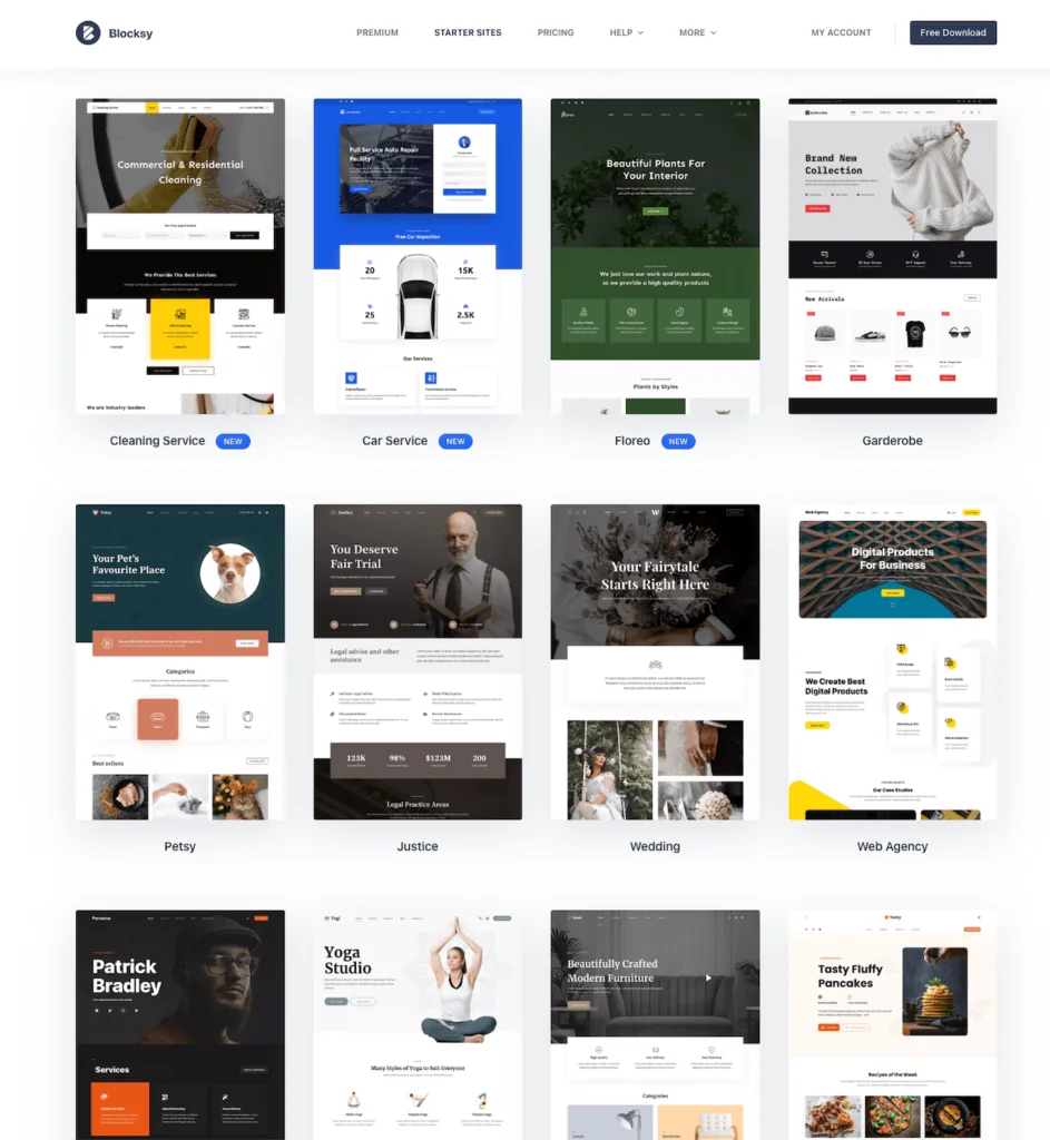 Ook heeft zowel Blocksy als Kadence een flinke bibliotheek met starter sites, waarmee je in een paar klikken een poepchique website hebt.